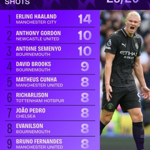 08 09月 2025 76 星空体育APP-新赛季英超射门次数排名:哈兰德14次领跑,B费、库尼亚与佩德罗紧随其后 9月3日体育讯——数据统计平台squakwa公布了本赛季英超球员射门数据榜单,曼城前锋哈兰德以绝对优势占据榜首。英超新赛... 英超